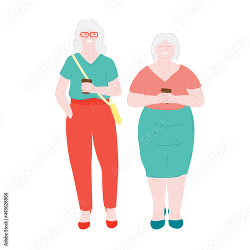 Péče o staré seniory. Žena pomáhá starší ženě s nakupováním potravin a křížením vektorové ilustrace. Dobrovolnická a charitativní služba