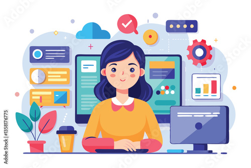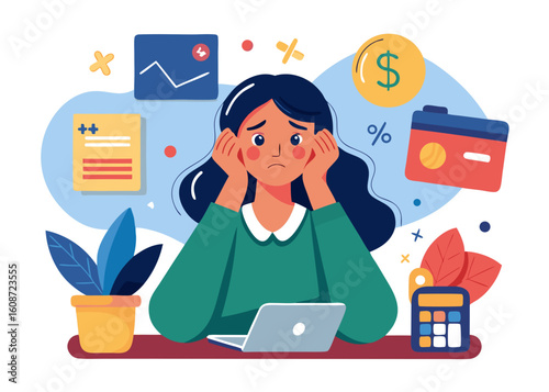 Žena v depresi a pláč po přečtení komentářů a nenávistných zpráv v mobilním telefonu. Online kyberšikana koncept vektorový plakát. Kybernetické obtěžování, nenávistné a zneužívající zprávy v sociálních médiích.