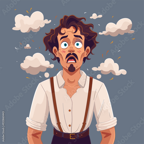 Žena v panice. Vektorová ilustrace v retro stylu pop art. Vystresovaná dívka v šoku chytne hlavu do rukou.