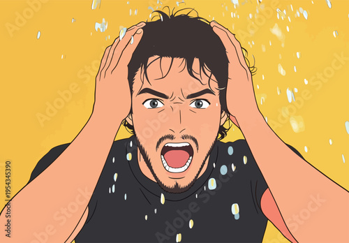 Žena v panice. Vektorová ilustrace v retro stylu pop art. Vystresovaná dívka v šoku chytne hlavu do rukou.
