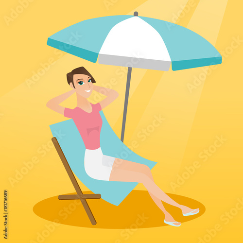 Žena v plavkách na tropické pláži. Letní koncept vektorové ilustrace v retro komiksovém pop art stylu.