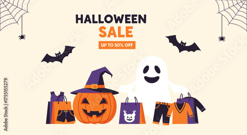 Žena v čarodějnice halloween kostým jít do nočního klubu. Halloween party oslava. Vektorové ilustrace. Dýňová dekorace.