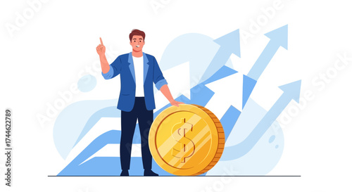Žena investor drží dolar zlatá mince vektorové ikony izolovaných na bílém pozadí. Lidé horník charakter. Obchodní a finanční růst