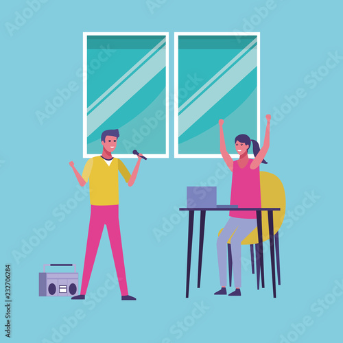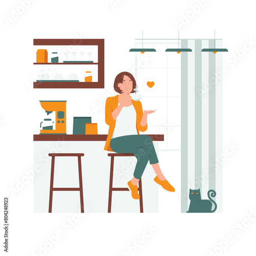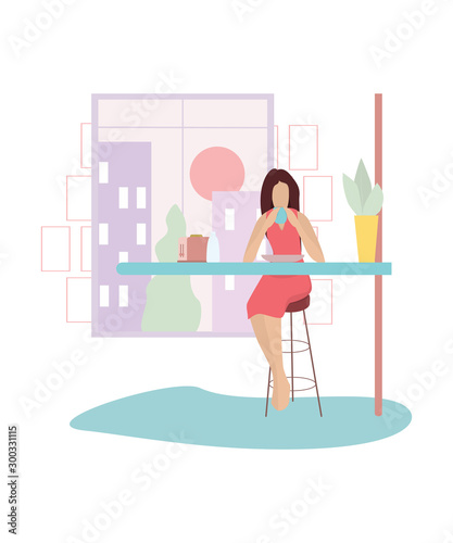 Žena žehlení prádla vektorové ilustrace. Hospodyňka používá domácí spotřebič.