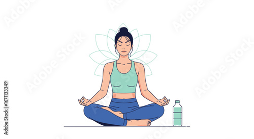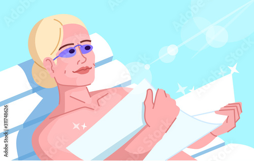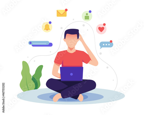 Žena poslouchá rádio podcast pomocí notebooku vektorové ikony izolované pozadí.