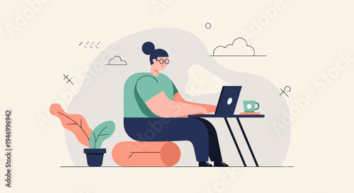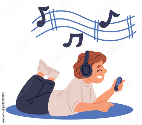 Žena poslech rádio podcast pomocí mobilního telefonu vektorové ikony izolované pozadí.