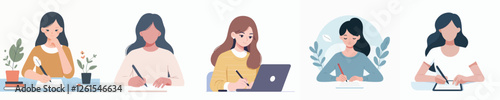 Žena poslech hlasové zprávy na smartphone vektorové ikony izolovaných na bílém pozadí