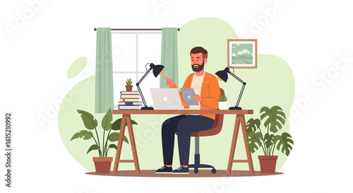Žena živě streamuje svůj blog online. Podcast koncept ploché vektorové ilustrace. Žena ovlivňující záznam vlogu ve svém domácím studiu.