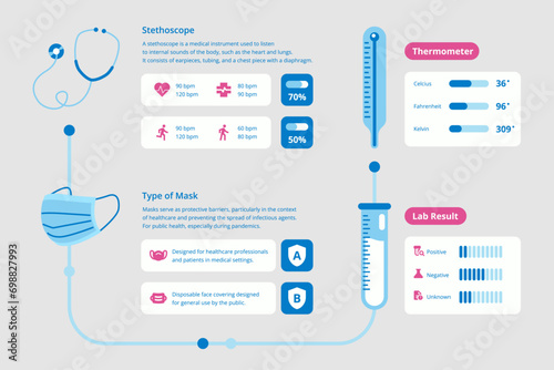 Žena se setká s lékařem v nemocnici. Zdravotní péče lékařský koncept vektorové ilustrace. Pacient na klinice mluví s lékařkou v masce. Stůl s lékařským vybavením. Klinika jmenování.