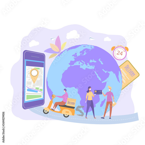 Mobilní aplikace s navigační mapou města a lokalizačním kolíkem na obrazovce smartphonu, žena objednávající taxi online pomocí mobilního telefonu, plochá vektorová ilustrace. Taxi cab sledování vozidel, pronájem auta, carsharing.