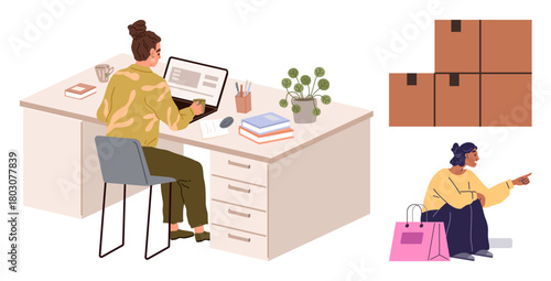 Pacientka na scéně konzultace s oftalmologem. Lékařská prohlídka zraku, diagnostika a léčba zraku vektorové ilustrace. Optometrista vyšetřuje klienta na soukromé klinice