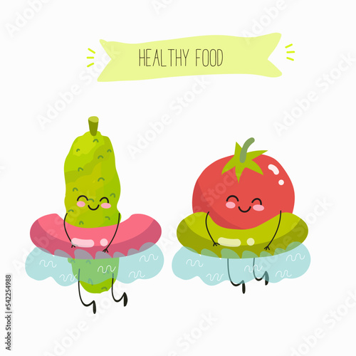 Vektorová ilustrace tenistky do forhendu na venkovním kurtu. Sportovkyně trénuje tahy tenisovou raketou a míčem. Aktivní životní styl. Plochý design