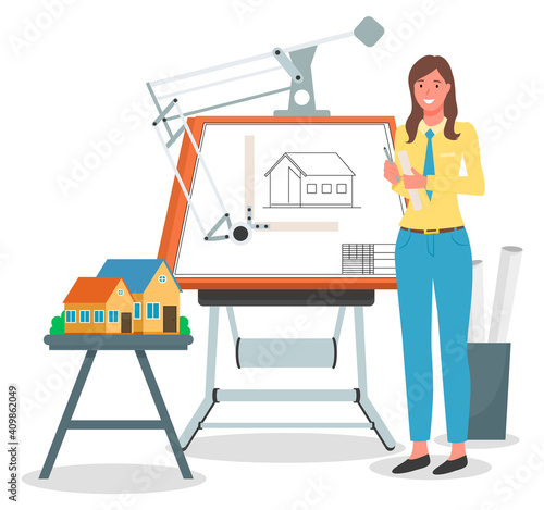Žena politik vystupující s projevem na pódiu vektor. Izometrické reproduktor nebo volební vůdce kandidát ikona izolovaných na bílém pozadí