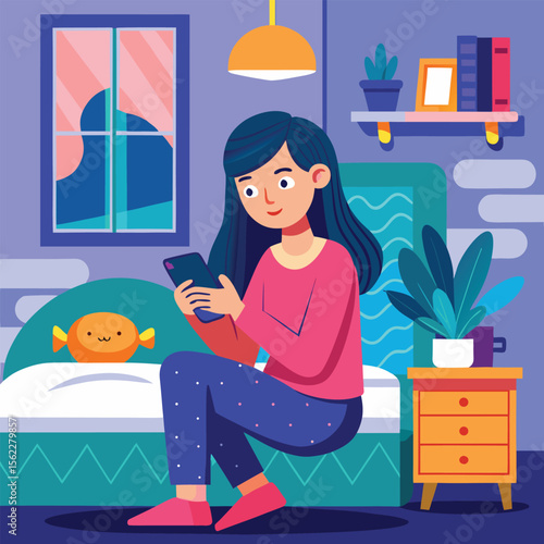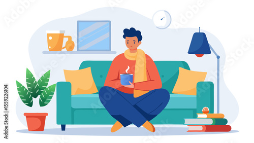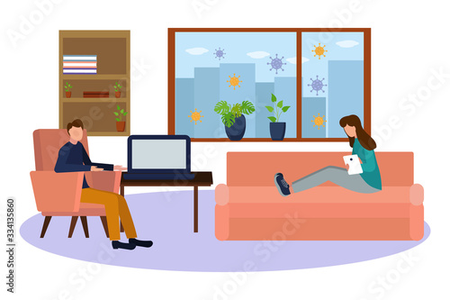 Žena čtení knihy na pohovce, zatímco vysavač domácí robot vyčistit pokoj. Vektorová ilustrace konceptu robotické technologie.