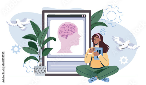 Žena čtení knihy sedí na okně vektorové ilustrace. Mladá dívka se těší relaxovat čas v útulném domě izolovaných na bílém pozadí. Čtenář literatury odpočívá o víkendu