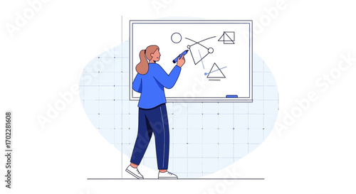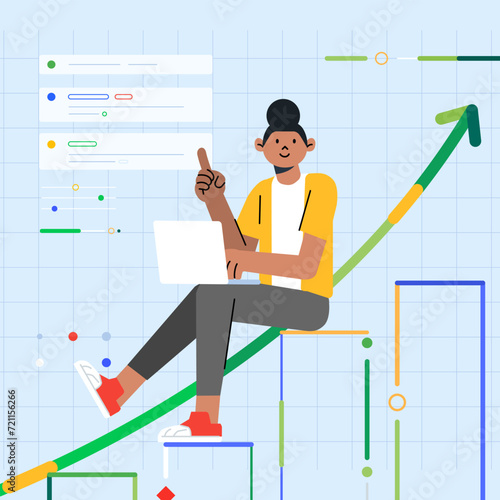 Žena odpovídá na dotazník, odpovídá na otázky průzkumu, plochá vektorová ilustrace. Test, zpětná vazba, kvíz, průzkum výzkumu.