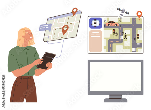 Žena nakupování s garáží prodej přes on-line bleší trh na smartphone vektorové ikony izolovaných na bílém pozadí