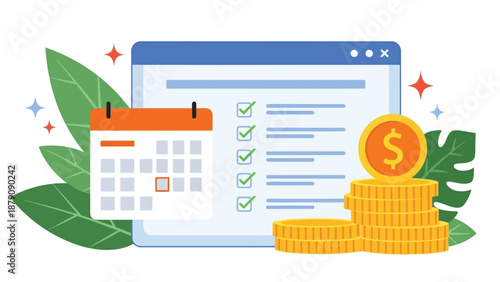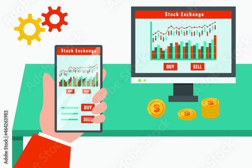 Žena sedí na židli a pracuje s notebookem z domova. Laptop s finančními grafy a budíkem na stole. Home office a obchodní koncepce ilustrace. Vektor web design šablony.
