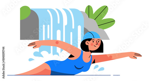 Krásná žena na sobě plavky ad sluneční klobouk opalování bezpečně pomocí opalovací krém, ploché vektorové ilustrace. Opalovací krém, opalovací krém. Rutina péče o pleť na letní pláži.