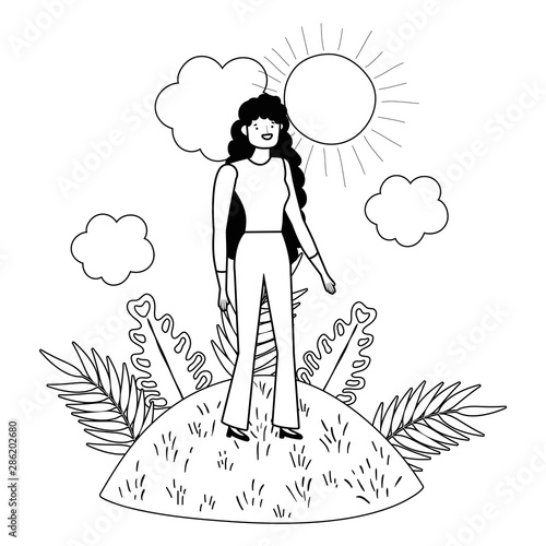 Mladá žena v neoprenu plavat na stand up paddle board. Sup surfování. Aktivní životní styl. Vektorové ilustrace v plochém designu