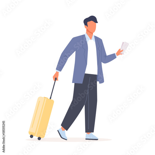 Žena cestovatel s zavazadla taška zadní pohled vektorové ikony izolovaných na bílém pozadí. Koncept virové pandemie.
