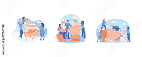 Žena pomocí smartphonu sociální média vektorové scény ilustrace set. Mladí lidé blogger fotografování potravin nebo selfie pomocí mobilního gadgets fotoaparátu. Vlogger natáčení videa pro vlog kanál