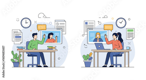 Žena na návštěvě Online lékaře pro hormonální substituční terapii, ploché vektorové ilustrace. Léčba na předpis HRT. Hormonální léky. Medicína a zdravotní péče o ženy, online lékařská konzultace.
