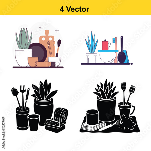 Žena zalévání rostlin v domácí zahradě. Dům Rostliny koncept ilustrace. Vektor web design šablony. Hrnkové květiny, Pokojové rostliny, květinářství hobby.