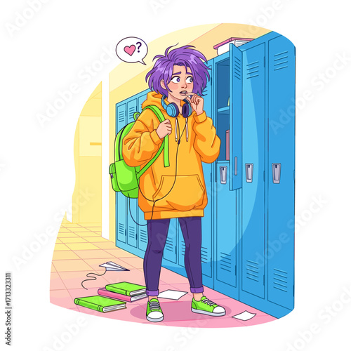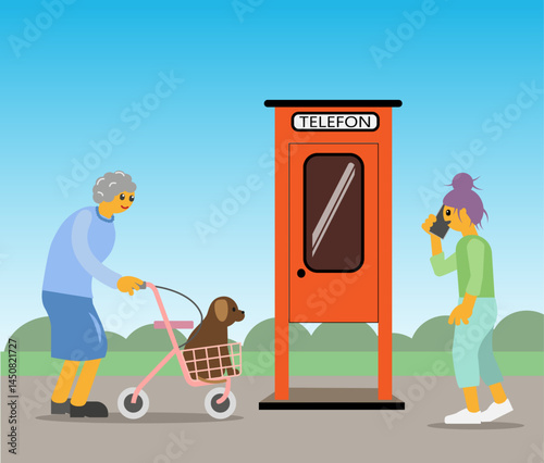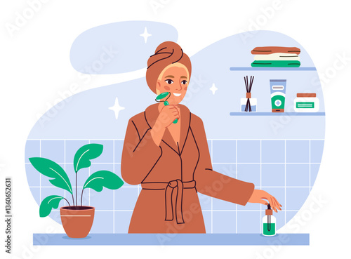 Mladá dívka s šálkem kávy nákup kávy znovu z automatu, ploché vektorové ilustrace. Zneužívání kofeinu a závislost. Nezdravý životní styl. Zlozvyk.
