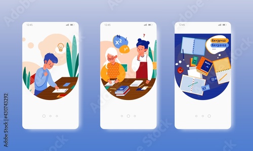Žena s mikrofonem nahrávání audio podcast. Online rádio, vysílání, podcasting. Obrazovky mobilních aplikací. Šablona vektorového banneru pro vývoj webových stránek a mobilních zařízení. Webové stránky a UI design ilustrace.
