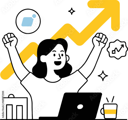 Žena Práce na notebooku retro komiks pop art vektorové ilustrace. Podnikatelka ve funkci. Práce je hotová.