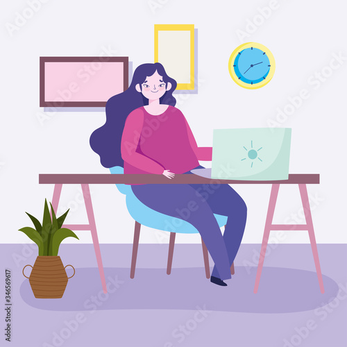 Žena pracuje na notebooku vektorové ikony izolovaných na bílém pozadí