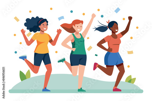 Ženy rugby championship, turnaj, vektorové ploché ilustrace. Vítěz tým slaví vítězství s Gold trophy cup. Šťastné dívky vyhrávají Světový pohár v ragby.
