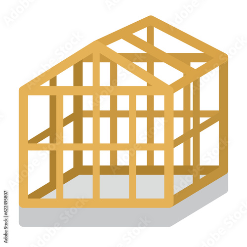 Dřevěný dům rám budovy vektorové ikony. Izolovaných domů staveniště na bílém pozadí