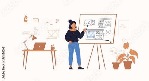 Drobné ženské postavy pracující z domova pomocí přenosného počítače a připojení k internetu, vektorová plochá ilustrace. Práce na dálku, na volné noze, home office.