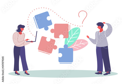 Pracovní úkol vektor. Lidé spojující puzzle ilustrace. Týmová práce, budování týmu, firemní organizace, partnerství, řešení problémů, inovativní obchodní přístup, brainstorming, jedinečné nápadové dovednosti