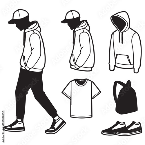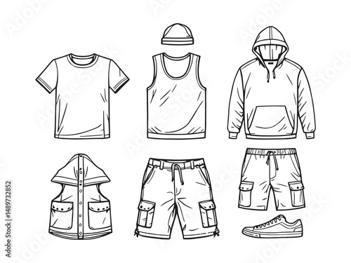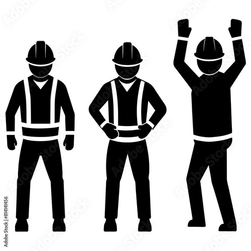 Profesionální pracovní oblečení a jednotný set, vektorové izolované ilustrace. Realistická ochranná kombinéza s reflexními pruhy, tričkem, botami, ochrannými brýlemi a žlutou helmou.
