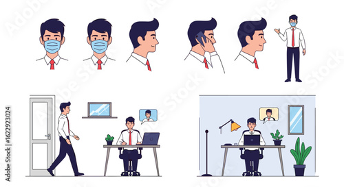 Sada kreslených postaviček world pandemic doctor, ploché vektorové ilustrace. Středověký mor, 1918 španělská chřipka, 1957 Asijská chřipka, pandemie koronaviru Covid-19. Kostým zdravotníků, Uniforma
