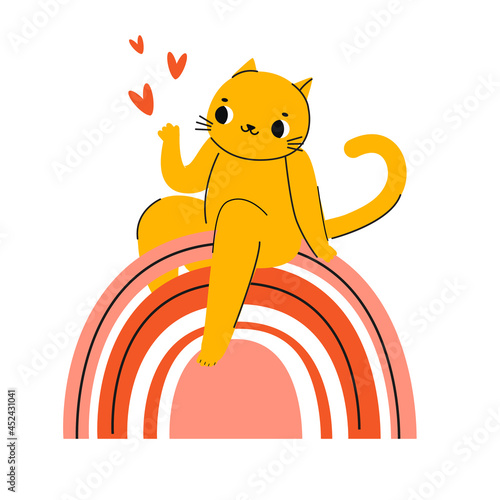 Jóga kočka vektor. Legrační pet animal kreslená postavička ilustrace. Kotě cvičení izolovaných na bílém pozadí. Fitness, sport, gymnastika cvičení a trénink