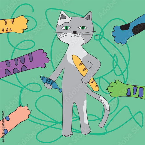 Jóga kočka ve stromu asana představovat vektor. Roztomilé zvíře kreslená postavička ilustrace. Kotě meditace izolovaných na bílém pozadí. Mír a všímavost