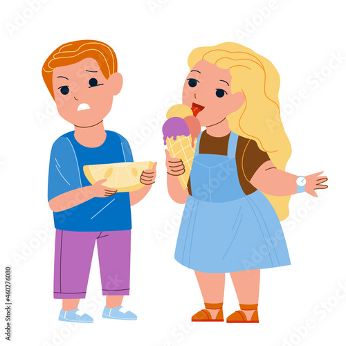 Mladí dospělí lidé a děti konzumující nezdravé rychlé nezdravé jídlo vektorové ilustrace izolovaných na bílém pozadí. Poruchy příjmu potravy, špatné návyky a dietní problém