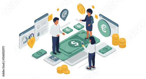 Mladý pár pomocí mobilních telefonů pro chatování, sdílení fotografií s lajky, úsměvy a komentáře, ploché vektorové ilustrace. Sdílení souborů, přenos přes připojení k internetu.