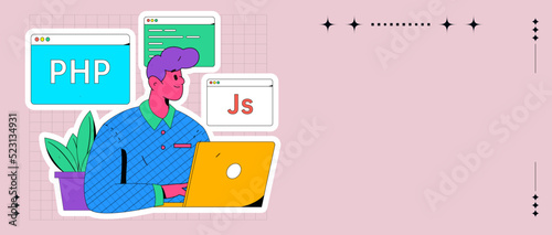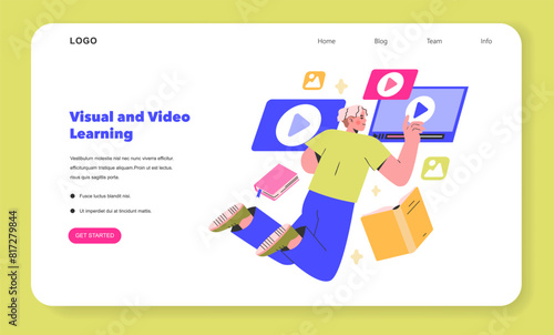 Mladý hráč hraje počítačovou videohru. Gamepad konzole herní gadget. Cybersport koncept ilustrace. Vektor web design šablony. Vstupní stránka webové stránky ilustrace.