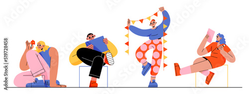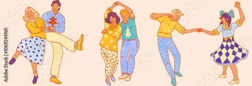 Interracial pár zahrnující ploché vektorové sady. Mladý muž a žena milující navzájem ilustrace. Šťastný nadnárodní Rodina s dětmi izolovaných na bílém pozadí