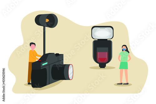 Mladý muž dělá bench press cvičení, zvedání činka, vektorové ploché ilustrace. Cvičení s osobním trenérem. Silový trénink cvičení, kulturistika, sport a zdravý životní styl.