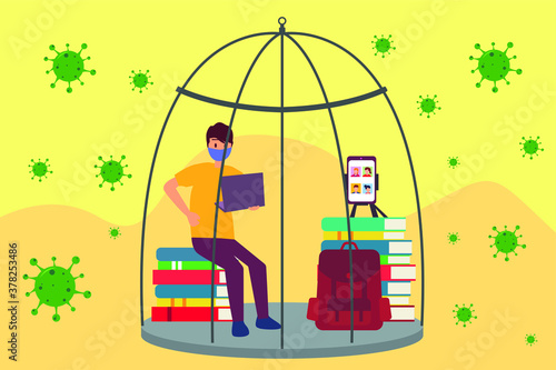 Závislý na nikotinu mladý muž kouří cigaretu v městském parku, ploché vektorové ilustrace. Pasivní kuřák. Závislost a zneužívání nikotinu, závislost na tabáku a kouření.