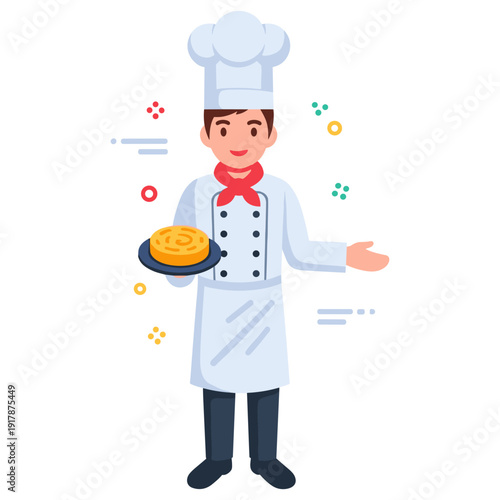 Mladý mistr kuchař vektorové ikony izolovaných na bílém pozadí