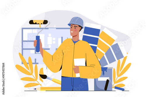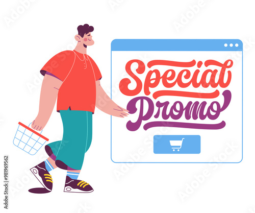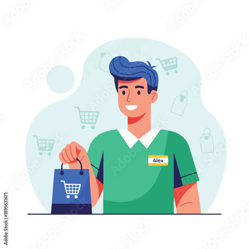 Mladý svalnatý kulturista držení závaží činky stojící poblíž protein láhev kanystr izolovaných na bílém pozadí. Vektorové ilustrace sportovec reklama sportovní doplněk výživy