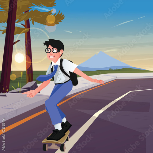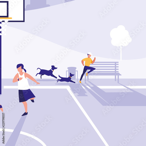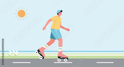 Mladí lidé kreslená postavička se těší kolečkových bruslích v parku izolované sady. Šťastný dospívající chlapci a dívky baví sportovní aktivity rutina na víkend vektorové ilustrace