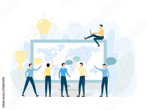 Mladí lidé sbírají a poskytují lajky, Komentáře ostatním pomocí mobilního telefonu, přenosného počítače, ploché vektorové ilustrace. Sociální média se líbí, služby sociálních sítí, online komunikace.